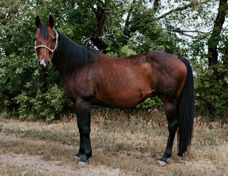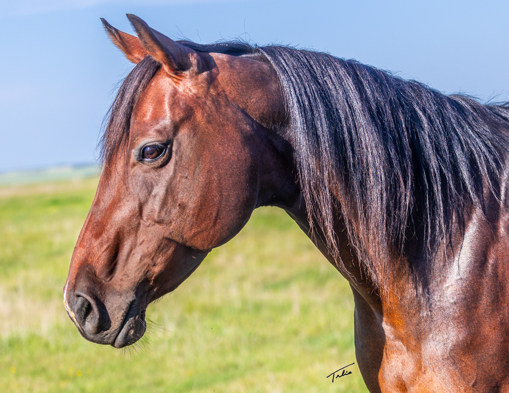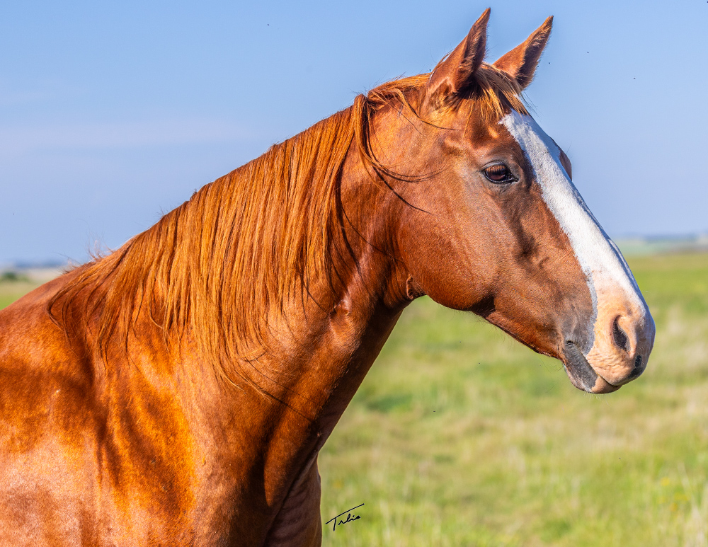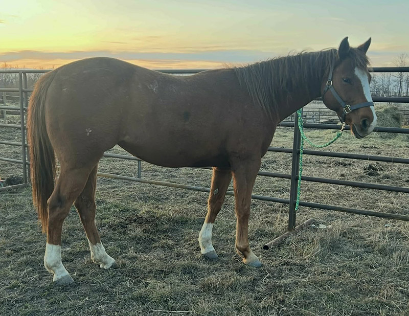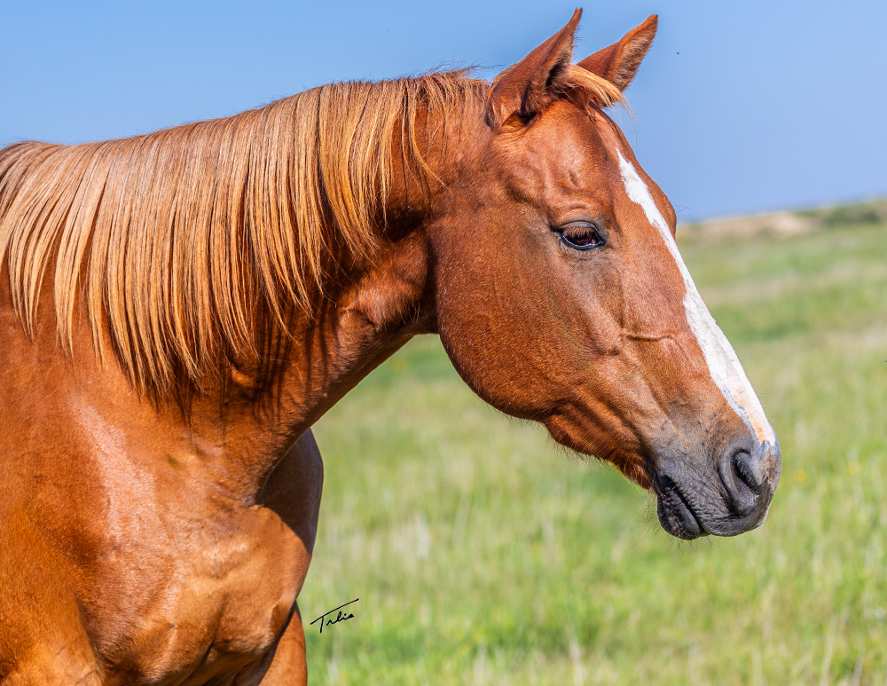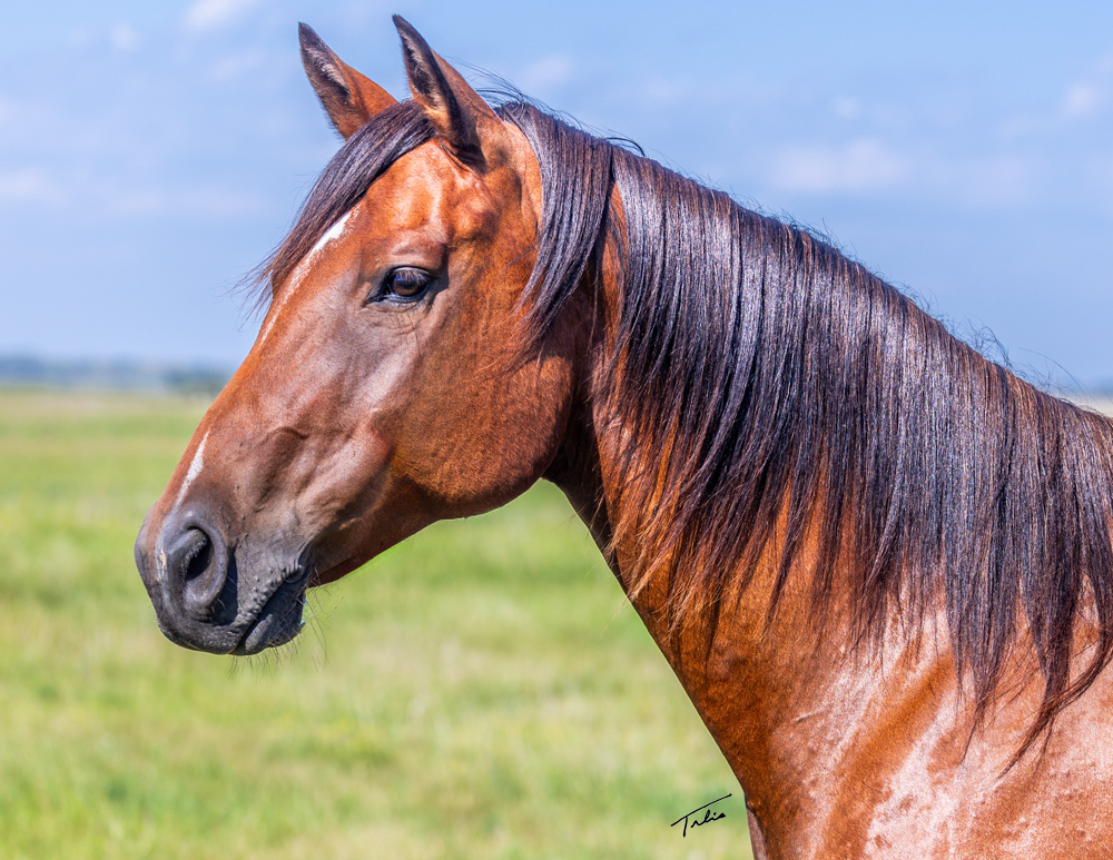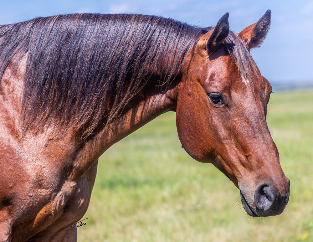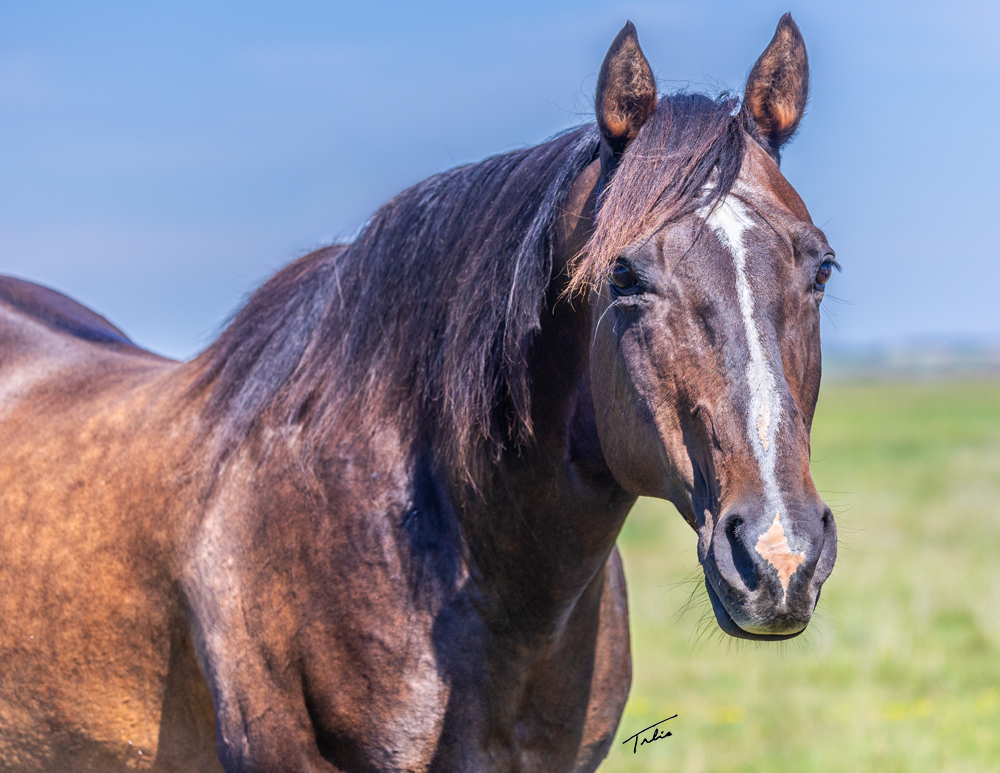 NOTE: An accident required the removal of her right eye, and landed her in our broodmare pen.