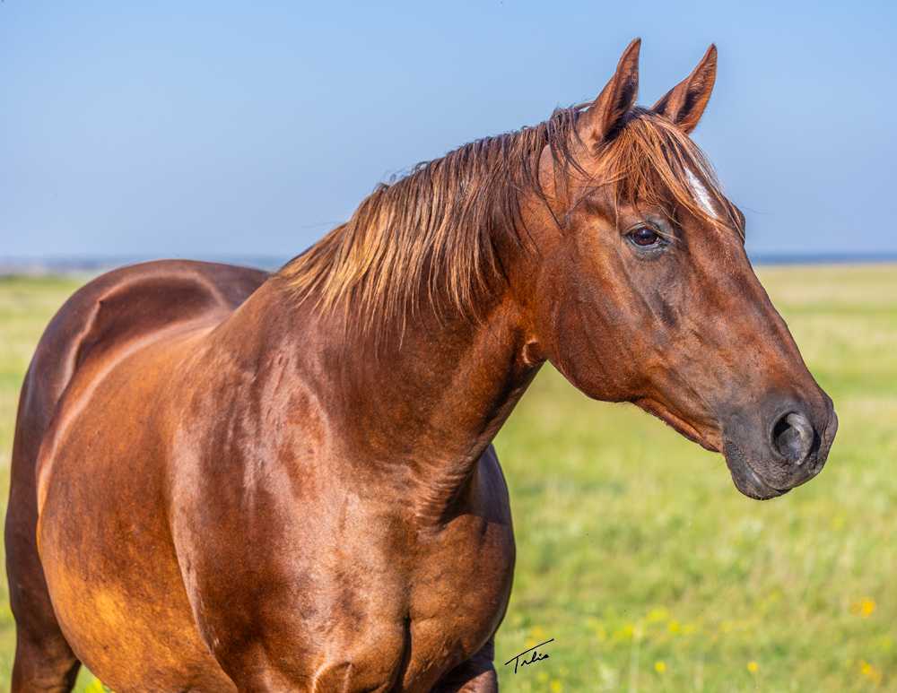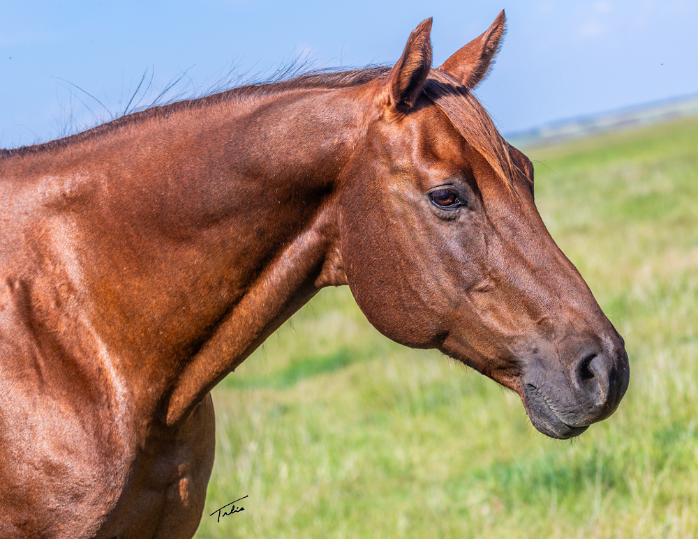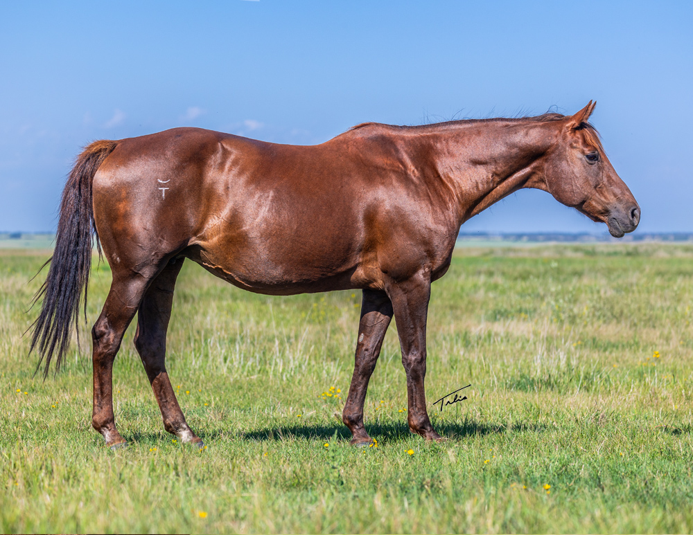A new addition to our breeding program, "Tracey" is a AAA Race Winner with $14,059 LTE and daughter of the legendary Tres Seis (SI-97 LTE $856,901, leading broodmare sire with offspring earnings in excess of $39.7 Million) out of a daughter of American Quarter Horse racing’s most prolific stallion, First Down Dash (SI-107 LTE $857,256). In foal to TPR StreakN Goldmine for a 2026 foal.