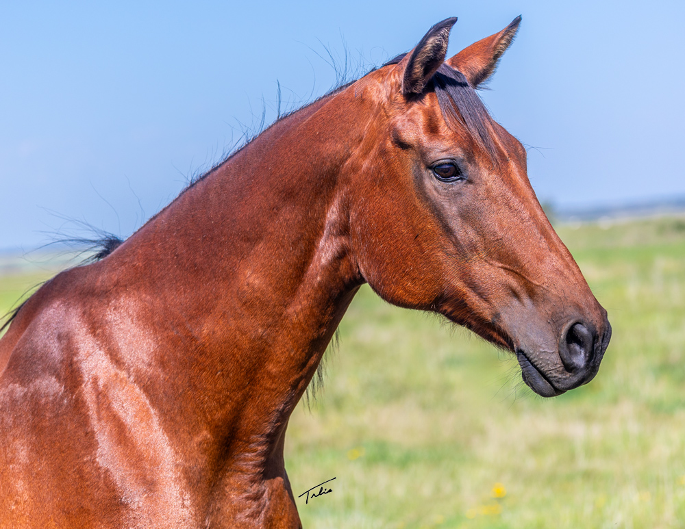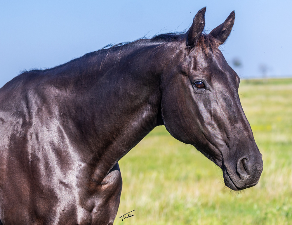 She has a tremendous barrel pedigree, sired by Canadian Pro Circuit Champion and CFR Barrel Racing Champion Dat Blue Moon (LTE $140,000) and out of a daughter of Whos Bad (On A High SI-113 x Go Fancy Lady SI-82 by Go Man Go SI-100: Superior Race Horse Track Record Holder, #1 Canadian Race Sire in 1999 & 2000, OE $270,000+). In foal to TPR StreakN Goldmine for a 2026 foal.
