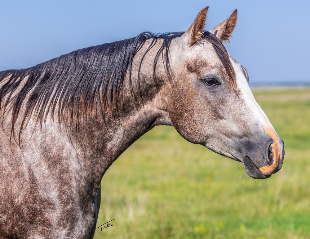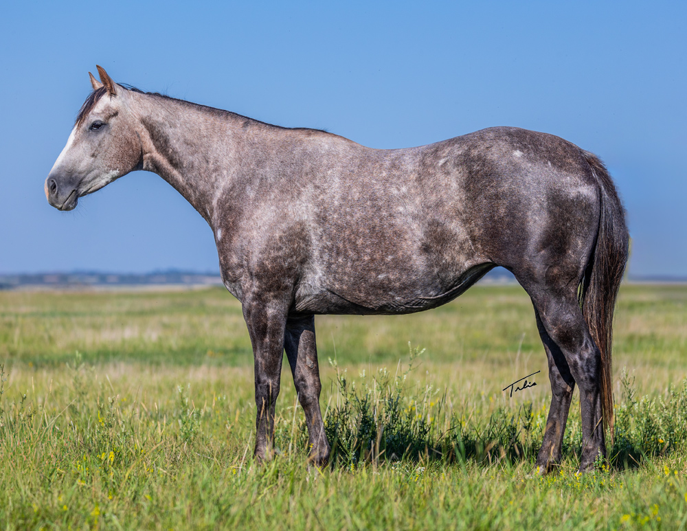 "Percilla" has a stacked pedigree with Miss Meter Jet right on her papers, and a neat rose grey colour that has us wondering what she'll produce crossed on our bay roan stallion. Her sire Jets Are Firen is known for his speed and performance, a son of MP Jet to the Sun (SI-101), by the legendary AQHA Champion and multiple stakes winner Jet of Honor (SI-99 LTE $311,828). His dam, Shes Jellin, is by the competitive sire Alive N Firen (SI-97), adding additional speed and fire to his bloodline. This outstanding mare's dam, Ladys Eyeopener, is by the legendary Mr Eye Opener (SI-108 LTE $202,978), a top-producing sire in the racing world with over $28.2 million in offspring earnings and a pedigree filled with speed. In foal to TPR StreakN Goldmine for a 2026 foal.